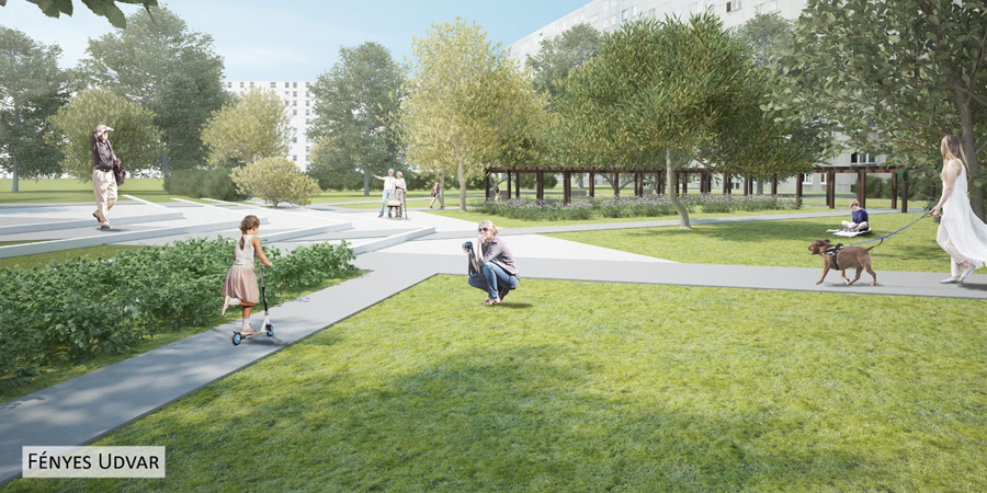 Leginkább a fényes udvari tömbbelső változik meg. Itt elbontják a nagy, összefüggő aszfaltfelületeket, hogy a korábbinál nagyobb legyen a zöldterület. A pingpongasztalokat kicserélik, a sportpályát, a kondiparkot és a játszóteret felújítják.